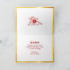Bold, graphic “Happy New Year” typography in both Chinese and English and a stunning visual of an elegant gold faux foil rabbit with flowers, clouds and stars, overlay a traditional red circle pattern and brushed gold foil border on the front. On the inside, a red cloud and star visual, along with your personal message, overlay a white background with a brushed gold faux foil border. Feel the warmth and joy of the holiday season whenever you send this stylish yet modern, personalized 2023 Chinese New Year of the Rabbit folded greeting card. Make sure someone special receives this greeting!