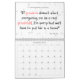 I am extremely happy with this calendar. It is durable and well made, The pages are easy to read. The calendars are easy to make. We made three versions using three sets of photos. It features my husband and my photos. Although we are amateur photographers, the printing by Zazzle makes our photos look professional.