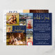 CONTACT THE DESIGNER FOR UPDATED CALENDAR ON BACK. Elegant, unique custom holiday greeting card with 9 photos and a year summary featuring real metallic gold foil titles and a photo collage template with 8 pictures of various shapes and sizes on the front and one on the back. The design offers an editable greeting (the sample shows HAPPY HOLIDAYS you can change to MERRY CHRISTMAS, HAPPY NEW YEAR or other holiday greeting and an editable title WHAT A YEAR! over the year 2023 in modern hand lettered calligraphy script typography. You can change the navy blue background and 2023 color to coordinate with your photos for a custom look. The back side features a photo and a 2024 year-at-a-glance calendar for their use throughout the new year. Share your personalized year in review summary or vacation travel photo memories with family and friends to stay connected this Christmas holiday season. Remove the Attribution QR code option before adding to your cart if it's not desired. ASSISTANCE: For help with design modification or personalization, color change, resizing or transferring the design to another product, contact the designer BEFORE ORDERING via the Zazzle Chat MESSAGE tab below or email makeitaboutyoustore@gmail.com.