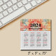 A horizontal clear acrylic block features a 2024 year-at-a-glance calendar with the months in red (or change to any color) and your business information over a colorful kaleidoscope print at the top. Perfect for your desk or give to customers and clients.