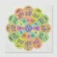 Keep track of the date in 2025 with this beautiful personalized calendar fridge magnet. This unique design forms the shape of a flower, with the calendar months in a circle on its petals. It has a retro hippie / bohemian look, with a swirled background. The colors are all shades of green, orange, coral pink, purple, and blue in the center. Use the easy templates to add your custom text.