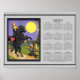 Sleepy Hollow Inspired Headless Horseman Daredevil Ichabod Crane exchange pumpkin for pumpkin pie Ichabod looks nervous, but he's trying to exchange a pumpkin pie with the Headless Horseman's pumpkin, in exchange for ...his life? lol There will be no heads rolling this Halloween harvest night! With his black steed horse, Daredevil, they stopped just to exchange their pumpkin for Ichabod's pumpkin pie. Red covered bridge and large tree in the background. Notice the wind blown cat tails hitting the log (like in the Disney short animated feature "Ichabod Crane", dirt road, lush grass, pond, and yellow harvest full moon in the scene. Hand painted, marker, mix media, and digital art scene by me, Kristie Hubler. Inspired by the book by Washington Irving, "Sleepy Hollow". Great for Halloween or fall home decor, a statement piece in any room!