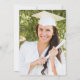 This classic, modern graduation party invitation features white text on a navy blue background. The word "Graduation" and the name of the graduate appear in casual modern handwriting font beneath a pair of white mortar board caps. Customize the invitation with party details, and replace the sample image on the back with a photo of your grad.