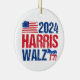 2024 Harris Walz Christmas ornament with the American flag and democrat donkey in red, white, and blue. Vote for Kamala Harris and Tim Walz for president and vice president as the democratic party candidates. Cool, patriotic design.