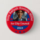 This personalized 2024 local election campaign button is a circular template designed to highlight a candidate's bid for office. The template features a patriotic color scheme and is crafted to be eye-catching and to convey essential information at a glance, combining traditional political motifs with a contemporary aesthetic suitable for a range of local election campaigns.