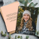 Modern Script Overlay 2024 Graduate Photo Announcement Card with room for additional details/information on the back. Back is pale peach with black text.