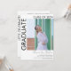 Modern Minimalist Two Photo Graduation Announcement & Grad Party Invitation with black text on white background. Back side has customizable areas to add party information or additional announcement details.