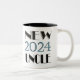 New Uncle 2024 dated mug with black text, great for the new uncle of a baby born in 2024.