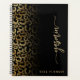 Personalize this elegant modern design with your name in vertical gold-colored signature handwriting script on a black background with a chic border of gold leopard spots. Add the year in sans serif font. (To keep the swashes at the beginning and end of the name, replace only the letters, leaving the symbols in place.)