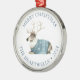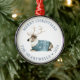This holiday ornament features a sweet watercolor reindeer in a blue and white sweater. The words "Merry Christmas" appear in blue serif font, with your family's name and the year below.