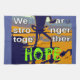 Celebrate the spirit of unity and resilience with our “Patriotic USA Hope Graphic.” This eye-catching design features bold white text that reads "USA, Hope," accompanied by the inspiring message "We Are Stronger Together." Set against a deep blue background, the artwork is beautifully accented with a tint of yellow, green, and orange motifs, making it a vibrant addition to any space.