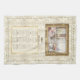 2025 Calendar towel tea towel - Framed scene of Paris from inside an apartment - decorative kitchen towel. Off white damask pattern background. The text "Paris" can be changed to any personalized message you like. Thanks for looking.