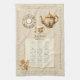 2025 Calendar towel tea towel - Gold and white teacup, plate and teapot decorative kitchen towel. Tan damask pattern background. The text "Tea Time" can be changed to any personalized message you like. Thanks for looking.