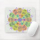 Keep track of the date in 2025 with this beautiful calendar personalized mousepad. This unique design forms the shape of a flower, with the calendar months in a circle on its petals. It has a retro hippie / bohemian look, with a swirled background. The colors are all shades of green, orange, coral pink, purple, and blue in the center. Use the easy template to customize.
