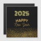 2025 Happy New Year - golden&black artistic magnetic card design . It features some bold typography , confetti solid black background .Unique design by Alma Wad using elements of different sources .
