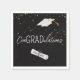 "ConGRADulations" in white text on black with gold confetti, a white diploma, and a graduate's cap for a 2025 graduation party.