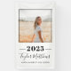 Congratulate your grad with this elegant stylish graduation announcement and party banner that features a senior photo with minimalistic black outlined frame, class year in bold text, and simple modern style wording that can be personalized with your graduate's name in script and high school. Classic and clean black and white color scheme.