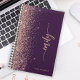 Personalize this elegant modern design with your name in vertical rose pink signature handwriting script on a purple background trimmed with a rose gold faux glitter border. Add the year in sans serif font. (To keep the swashes at the beginning and end of the name, replace only the letters, leaving the symbols in place.)