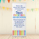 This cute customizable 2025 preschool graduation vertical banner features a cool grad cap above colorful writing and a row of crayons in rainbow. Fun pre-K graduate sign in fun colors for the last day of elementary school with personalized message. Congratulations to our preK graduates! Add your own quote.