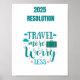 This design features the Travel quote “2025 RESOLUTION TRAVEL MORE WORRY LESS”. It makes a pretty wall art for men or for women, for a friend or even for the whole family.