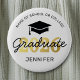 Custom graduation button featuring a graduate cap, 2026 in faux gold, school name, students name, and the word graduate in a script font.