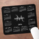 Chic 2026 calendar mouse pad features an elegant custom name and monogram above the year in the middle surrounded by a white calendar on a black background. Add your name and initial in the sidebar. Makes a great gift!