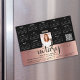 Present your best self to your clients and make sure they remember you year-round with this chic, elegant, 2026 calendar magnet card. A simple, modern 12 month calendar, black fancy handwritten script typography with feather pen, your custom qr code, personal photo and black sans serif typography overlay black and faux rose pink copper metallic ombre backgrounds. Personalize with your full name and business, the qr code and photo of your choice, phone numbers, address, email, website, and additional information. Makes a chic, memorable, professional and stylish leave-behind or mailable promotion for you.