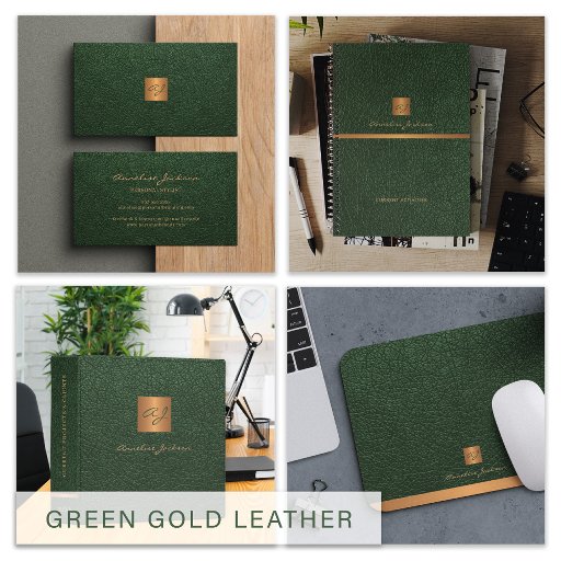 2026 Classy elegant green leather gold monogrammed Planner
