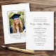A classic graduation commencement invitation featuring traditional typography and a custom photo. This elegant design presents a formal, minimalist layout and timeless sense of style. Upload your own photo, and personalize the text with the graduate's name, parents' names, qualification title, educational institution, graduation year, and ceremony details. Printing colors: black and white, or customize the color to match your university, school, or college. Available as a printed card or a digital download. Explore the online collection for matching design templates!