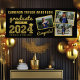 Gold Sketch Bold Typography On Black, Graduate Class of 2026/2027, Modern Three Multi Photo Collage Graduation Banner.