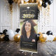 Step into the future with our elegant retractable graduation party banner. Customized to perfection, this piece showcases a sophisticated black backdrop, chic mortarboard, and mesmerizing gold glitter waterfall that's designed to impress. Accented with the year 2026 in faux gold foil font along with the graduate's name, their alma mater, and their field of study, this banner embodies a perfect blend of class and celebration. Cherish their milestone with a touch of style and elegance.