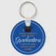 This cool royal blue custom senior graduation keychain features chic white and gold typography under a high school or college name for the class of 2026. Customize with your graduating year under the elegant calligraphy for a great personalized graduate key chain gift.