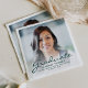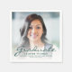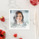 Modern graduation party napkins featuring a custom photo with text overlay. Easily replace the sample image with a photo of your graduate. The word "Graduate" appears in dark green handwriting script, with the name, school, and year of graduation below in sans serif font. A white gradient overlay helps make the green text pop. Ideal for high school or college graduation.