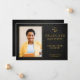 Modern elegant luxury black leather look and gold law school graduation announcement card template with your custom photo and text. ++++++++++ Easy to personalize on both sides!