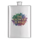 The product is a good size and came exactly as it was pictured. The lid is not attached to the flask, which could be dangerous on drunken nights... The print came out surprisingly well and looks very sharp. Would definitely recommend.