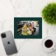 A modern minimal new years postcard in deep forest green with custom text. Simply personalize with your text and photo and spread the seasonal cheer around.