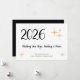 New Year 2026 holiday card, with festive black script typography and snowflakes on a white background. With customizable lettering, you can add your own message. A great way to send your wishes of hope healing and peace in the new year.
