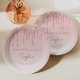 I ordered personalized baby shower plates and I loved them and they were delivered on time they were personalized with thanks for showering our little peanut. The printing turned out good but edge of plates had like tears around the edges I would recommend them to any one having a baby shower or party