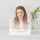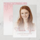 Trendy modern graduation thank-you card featuring a custom vertical photo. The words "Thank You" appear in pink handwriting script overlay, with the graduate's name and year of graduation below in sans serif font. Easily replace the sample image with your own graduate's photo. A white gradient screen helps ensure the text pops. The reverse side features a pink dripping faux glitter border on an ombre background. Customize the text with your own thank-you note, or delete it to provide room for individual handwritten messages.