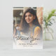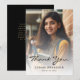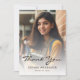 Simple modern graduation thank-you card featuring a custom vertical photo. The words "Thank You" appear in black casual handwriting script overlay, with the graduate's name and year of graduation below in sans serif font. Easily replace the sample image with your own graduate's photo. A white gradient screen helps ensure the text pops. Customize the gold-colored text on the reverse side with your own thank-you note.