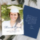 Simple modern graduation thank-you card featuring a custom vertical photo. The words "Thank You" appear in navy blue casual handwriting script overlay, with the graduate's name and year of graduation below in sans serif font. Easily replace the sample image with your own graduate's photo. A white gradient screen helps ensure the text pops. Customize the text on the reverse side with your own thank-you note.