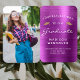 Help your graduation guests keep cool during the ceremony or party with these custom photo graduation hand fans, featuring the words "Congratulations to our Graduate" in white text on a magenta faux brushed metal background. The word "Graduate" appears in a graceful handwriting-style script. A pair of gold faux glitter mortar board caps and a scattering of gold confetti decorate the top portion of the label. Personalize one side with your grad's name, school, and year of graduation. Easily replace the sample image on the other side with a photo of your grad.