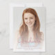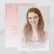 Trendy modern graduation announcement featuring a custom vertical photo. The word "Graduate" appears in pink handwriting script overlay, with the graduate's name, school and year of graduation below in sans serif font. Easily replace the sample image with your own graduate's photo. A white gradient screen helps ensure the text pops. Add details about your graduate's accomplishments and future plans on the reverse, which features a pink dripping faux glitter border on an ombre background.