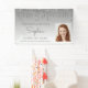 Celebrate her graduation from high school or college with this chic, glamorous photo banner, featuring a sparkly silver faux glitter drip border and ombre background. Easily replace the sample image with a photo of the graduate. Personalize it with her name in gray handwriting script, with the class year and school name below in sans serif font.