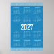 2027 Calendar, Greek Fret, Cosmic Latte on Blue Poster