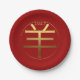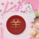 Golden Goat or Ram Symbol with an embossed digital effect on dark red background + 2027 on paper plate. You can easily change the Year (font, color, size and position) by clicking the customize button. Matching Paper napkin and more. Perfect for Chinese New Year of The Goat 2027 or Birthday (people born in Goat year).-------- "The Goat (Chinese: 羊; pinyin: yáng) is the eighth sign of the 12-year cycle of animals that appear in the Chinese zodiac related to the Chinese calendar. The sign is also referred to as the Ram or Sheep sign, since the Chinese word yáng is more accurately translated as Caprinae, a taxonomic subfamily which includes both sheep and goats. (...) People born within these date ranges can be said to have been born in the "Year of the Goat", while also bearing the following elemental sign: