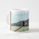 A train at a railroad crossing covers the front of this mug.