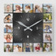 20 Photo Collage Faux Black Brushed Metallic Foil Square Wall Clock