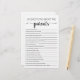 Purchase this game and enjoy high quality 20 Questions about the Parents card for your event! Gender neutral Black and White design.
