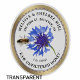 Waterproof oval stickers. Pretty blue Centaurea montana (Bachelor’s button, Mountain cornflower) and honeybee with blue dashed and gold gradient border. CHOOSE TRANSPARENT or WHITE LABEL (edges).